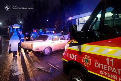 В Кривом Роге спасатели деблокировали водителя после столкновения авто с трамваем
