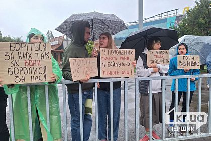 Криворожане под дождем вышли на еженедельную мирную акцию в поддержку военнопленных