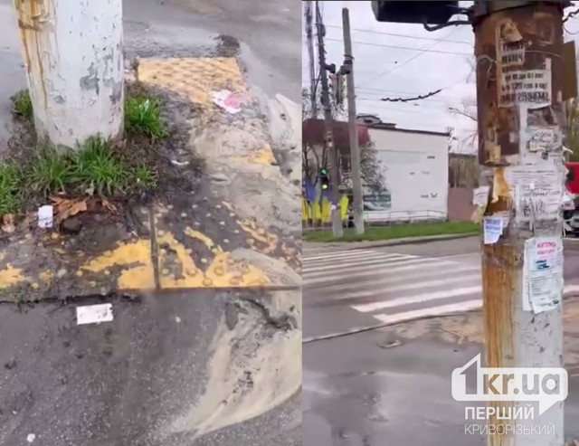 В Кривом Роге второй день из-под столба посреди улицы течет вода