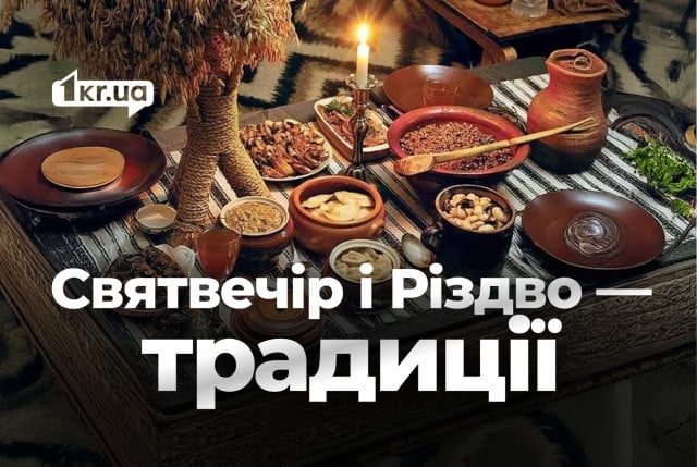 Во многих домах к столу приносят дидуха — сноп пшеницы или ржи, символизирующий благополучие и связь поколений. На стол ставят свечу как знак света, который приходит в дом вместе с Рождеством.