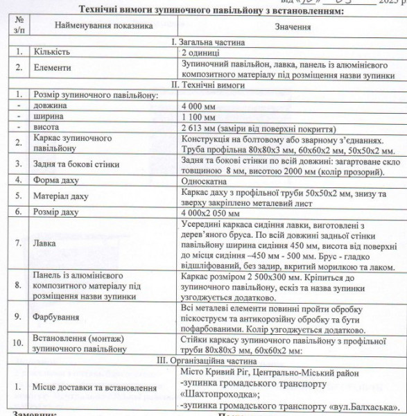 В договоре указано, что срок поставки павильонов – по 20.12.2025. Также в документе отмечается, что стоимость одного остановочного павильона – 249 тысяч гривен.
