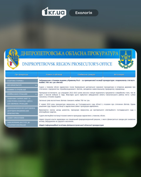 Экологический ущерб оценили почти в 700 тысяч гривен. В июне 2024 года прокуратура обратилась в Хозяйственный суд Днепропетровской области с требованием взыскать эту сумму, однако суд первой инстанции отказал.