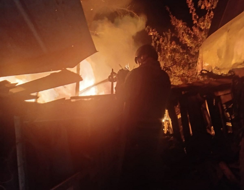 Возник пожар. Уничтожены теплица и хозяйственная постройка, еще одна – повреждена. Повреждены также многоквартирный и частный дома, автомобиль.