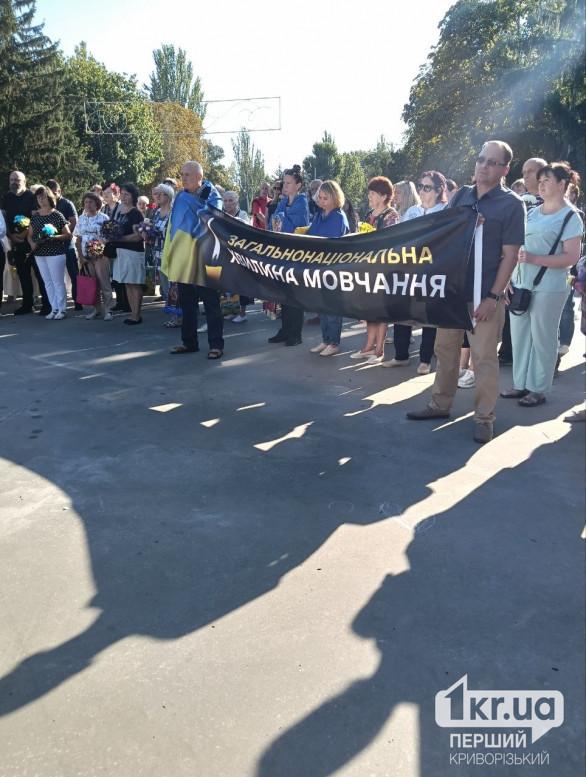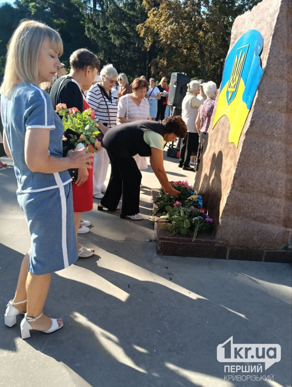 В 09:00 на Аллее Славы Героев в Ингулецком районе собрались горожане, чтобы склонить головы в минуте молчания. В руках они держали государственные флаги и фотографии погибших военных.
