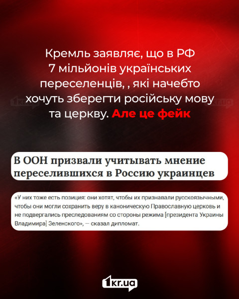 В-третьих, если речь идет об украинцах, которые выехали в РФ после начала полномасштабного вторжения, то и здесь цифры Кремля завышены в тысячу раз. По данным Агентства ООН по делам беженцев, в конце 2024 года в России зарегистрировали только около 7 тысяч украинцев. В предыдущих оценках ООН упоминалось примерно 1,2 миллиона человек, которые вынуждены были оказаться на территории РФ.