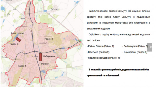 Жители Бахмута, когда квартал будет построен, смогут хоть на миг оказаться в родном городе, поскольку названия районов будут похожи на прежние — Район Самолета, Цветмет, Забахмутка, Комаровка и Садовая застройка.Бахмут был городом роз. В 2015 году на «Аллее роз» зафиксировали рекорд Украины в номинации «Наибольшее количество роз в одном месте». Именно поэтому в Гоще также хотят сделать такую аллею, чтобы каждый бахмутчанин мог вспомнить о своей малой родине.