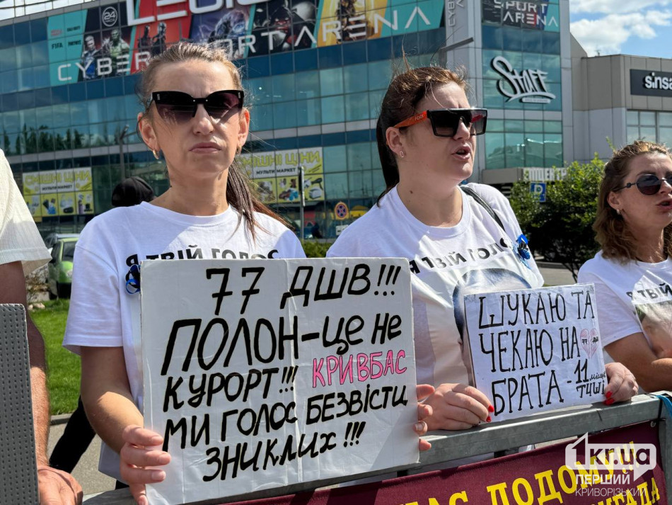 Среди лозунгов были: «Спаси жизнь пленных», «Плен — это смерть, растянутая во времени #FreeAzov», «Не молчи, плен убивает! Мы — голос без вести пропавших», «77 дней! Плен — это не курорт! Кривбасс без вести пропавших».