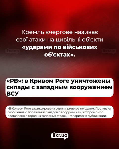 «В Кривом Роге зафиксирована серия ударов по целям. Поступают сообщения об поражении складов с оружием, которое было поставлено в город из западных стран», — говорится в публикации.Но это очередное оправдание российского террора гражданского населения и инфраструктуры.