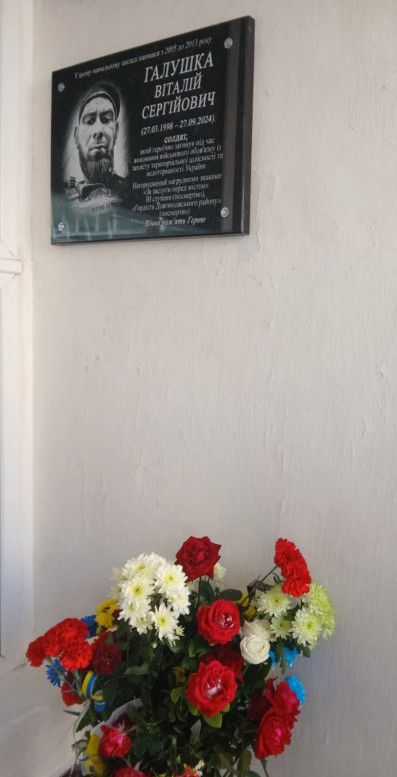 На фасаде криворожской гимназии открыли памятную доску погибшему защитнику Виталию Галушке