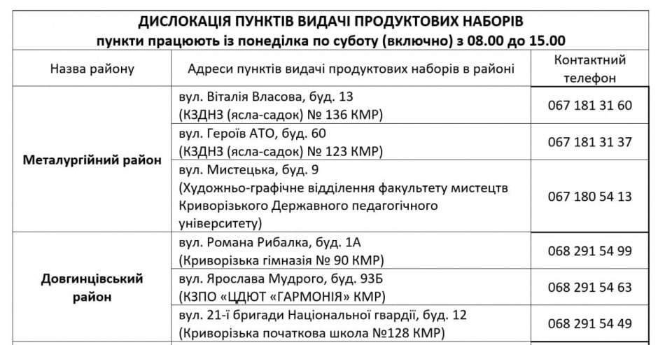 Кроме криворожан, получить наборы могут и переселенцы, состоящие на учете в управлениях труда и социальной защиты населения города и имеющие льготные категории.