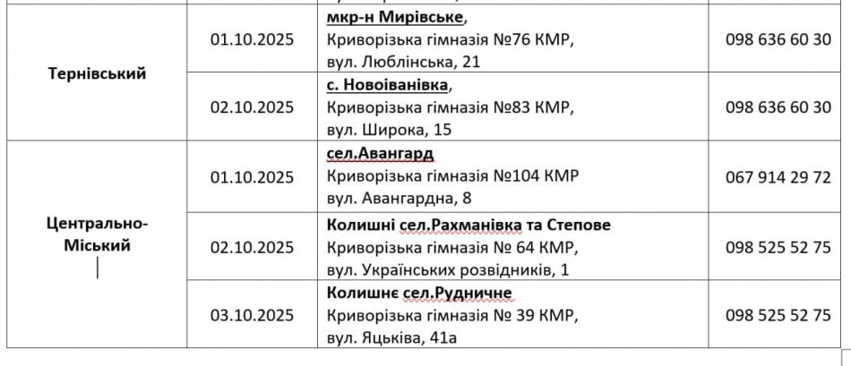 Механизм и условия получения неизменны. В городе работает 24 стационарных пункта с понедельника по субботу с 08:00 до 15:00. Однако пункт в Покровском районе по адресу улица Святоандреевская, 10А (Криворожская гимназия №112) будет работать как выездной пункт выдачи (с 10 по 17 сентября).