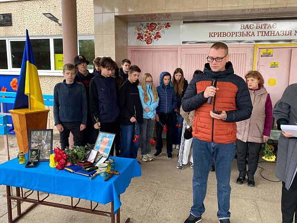 Также недавно на фасаде Криворожской гимназии №118 состоялось открытие мемориальной доски погибшему выпускнику Виталию Анатольевичу Бродовскому.