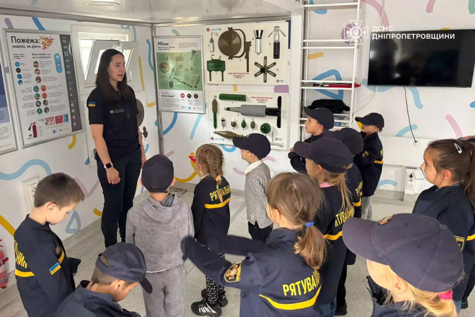 В Кривом Роге спасатели совместно с полицейскими провели интерактивное занятие для школьников в рамках проекта «Мобильный класс безопасности».