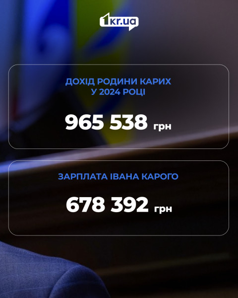Директор Департамента развития инфраструктуры города Кривой Рог Иван Карий подал декларацию за 2024 год, в которой указал собственные доходы, а также доходы и имущество своей жены - Елены Карои.