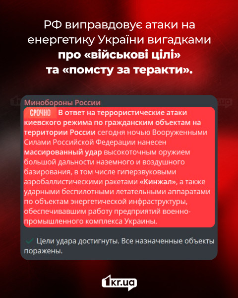 Удары по энергетике не имеют никакого отношения к «военным объектам». Их настоящая цель — лишить украинцев света, тепла и воды в холодный сезон, вызвать панику, давление на власть и деморализовать население.