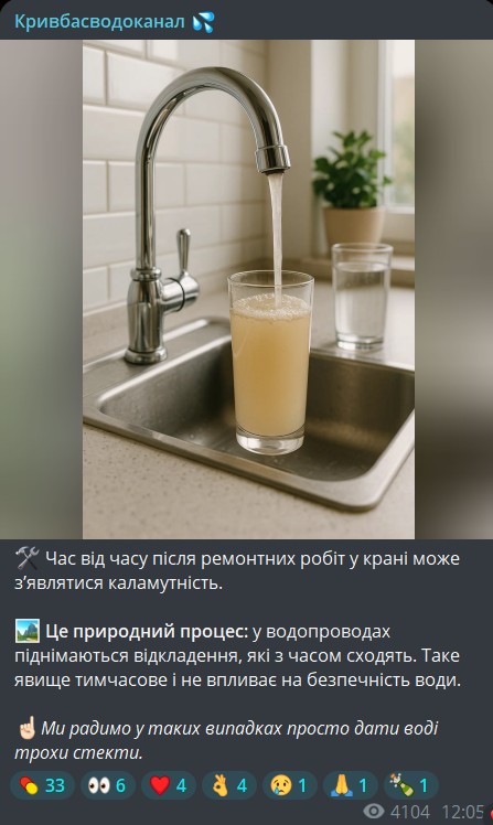 - «Мутная вода — это естественный процесс, — Кривбассводоканал»;
