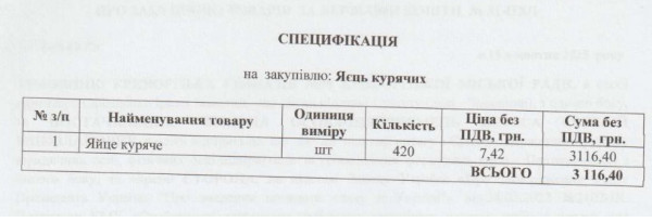 3 октября отдел образования заключил договор с ФЛП-ом Дмитрием Рассадниковым. У него одно яйцо стоит 5,5 грн (без НДС).