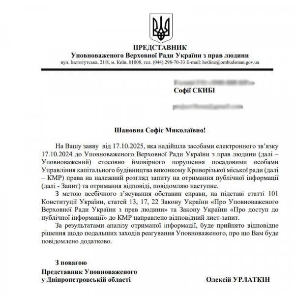 Редакция «Первого Криворожского» подала информационные запросы относительно актов выполненных работ, но нам их не предоставили. Поэтому мы обратились к Уполномоченному по правам человека.