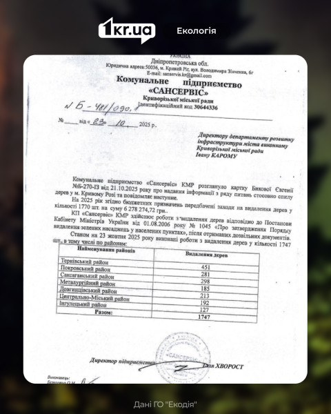 Более 6 миллионов из бюджета города — на вырубку деревьев в Кривом Роге