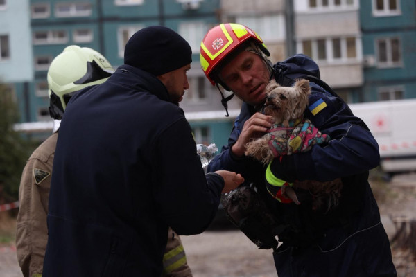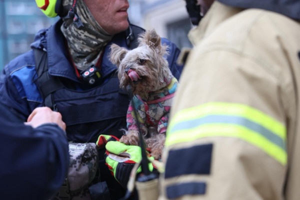 В Днепре из-под завалов спасли собаку: она упала с пятого на второй этаж