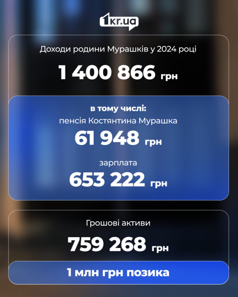 - квартира площадью 61,1 кв. в Кривом Роге, общая долевая собственность Константина, Евгении и Антона Мурашко, стоимость квартиры не указана;