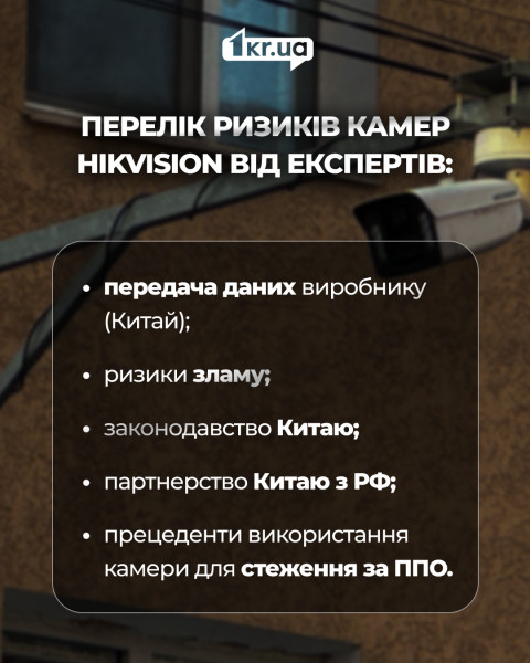 Редакция «Первого Криворожского» обратилась за комментарием к Павлу Белоусову, эксперту по цифровой безопасности.«Производитель не очень безопасен. Его часть принадлежит Китаю и в Китае по законодательству, все, даже частные компании, должны сотрудничать со спецслужбами. Это не прихоть, не пожелание, это требование. Поскольку в Китае не соблюдают этические нормы, технологические и так далее, то они могут в программное обеспечение запихнуть все, что угодно, например, распознавание. И потом эти данные могут отправляться на серверы Китая», – говорит Павел.Эти данные зашифрованы, и мы просто можем видеть сам факт, что на камере что-то произошло, какие-то данные пошли в Китай. А что именно произошло, выяснить достаточно сложно. Такая угроза существует и уже были прецеденты. 2 января 2024 года СБУ сообщила, что их киберспециалисты обнаружили в Киеве камеры, которые российские хакеры сломали и использовали для слежки за работой ПВО и объектами критической инфраструктуры. Эти камеры установили обычные киевляне для домашнего использования, но после взлома россияне получили к ним удаленный доступ. Расследователи из «Схем» со ссылкой на источник в правоохранительных органах сообщили, что одна из этих камер была Hikvision, работавшая на китайском программном обеспечении.