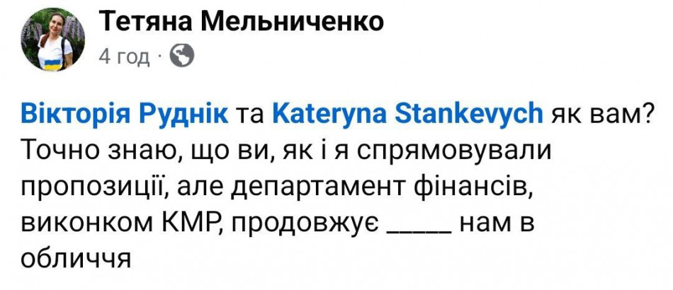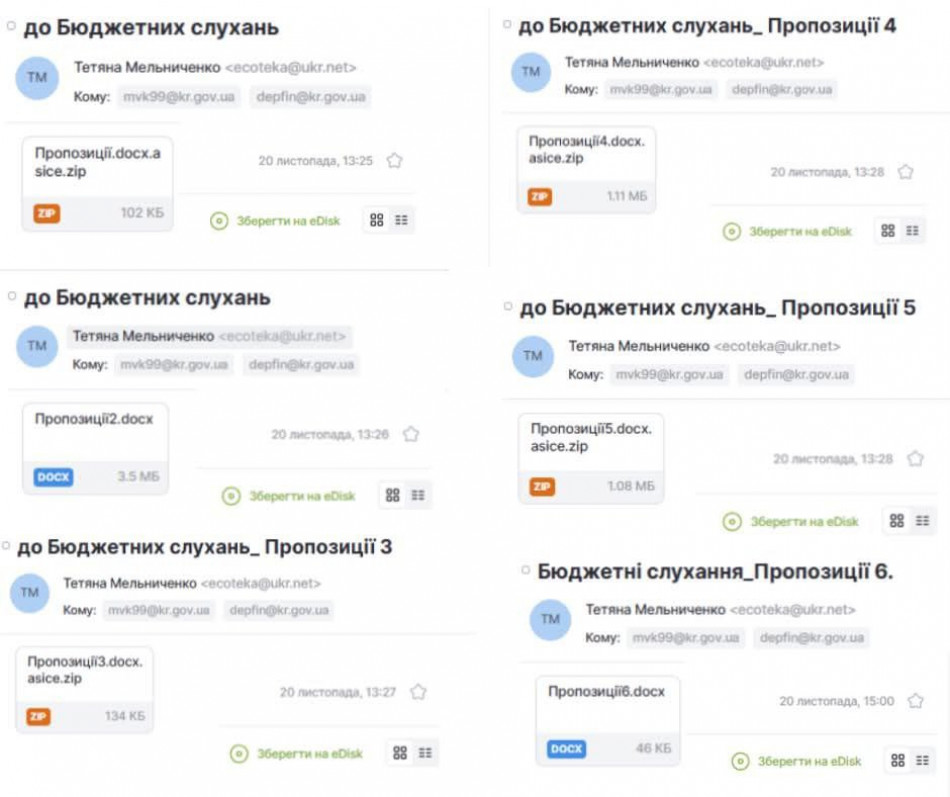 После заявления исполкома об «отсутствии предложений» Татьяна Мельниченко опубликовала в соцсетях скриншот, где видно, что она присылала несколько предложений по проекту бюджета на 2026 год.