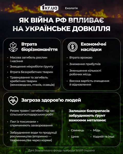 «Фактически плодородный слой превращается в обеднённый, “мертвый” субстрат, восстановление которого может занять десятилетия», — подчёркивают эксперты WWF-Украина.