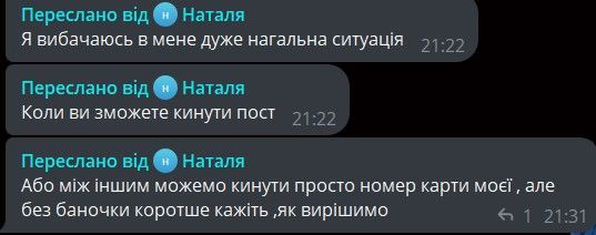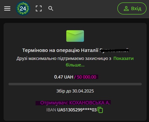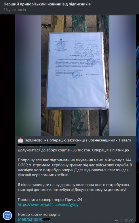 Женщина утверждала, что она военная и ей нужны деньги на операцию, предоставляла снимки из больницы и ссылки на другие каналы, которые уже распространили ее сбор.