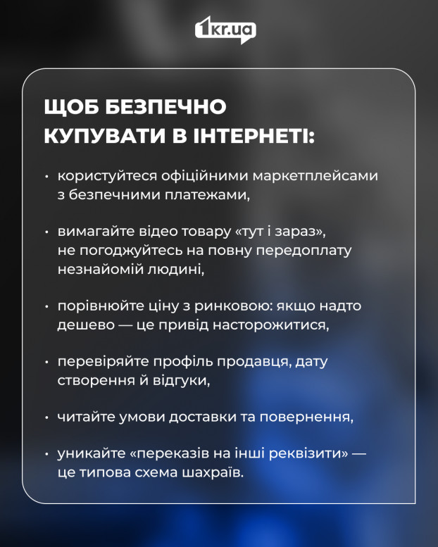Редакция «Первого Криворожского» обратилась к старшему инспектору по коммуникации Криворожского районного управления полиции Ангелины Крадожон, чтобы узнать, как безопасно делать покупки в интернете и уберечься от мошенников.