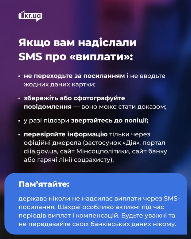 Люди получают сообщения и звонки — якобы от «Дії», банков или госучреждений. Содержание почти всегда одинаковое: выплата уже доступна, нужно только перейти по ссылке и подтвердить данные.