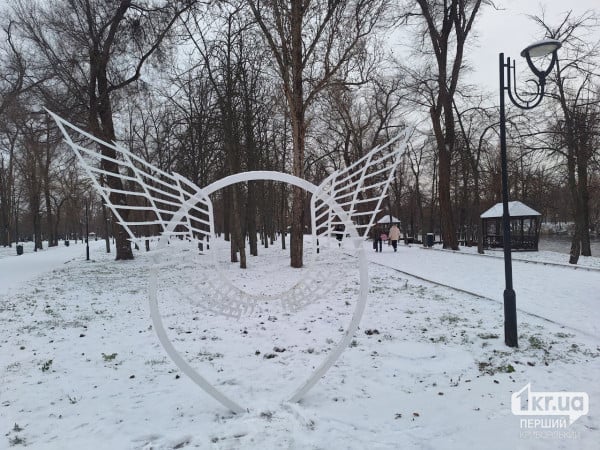 В парке имени Федора Мершавцева (Гданцевском) разместили две конструкции — фотозону «Свободные крылья» и декоративную фоторамку с панорамой на Лодчную станцию. На рамке есть надпись «Я люблю Кривой Рог».