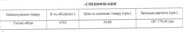 В 2023 году было заказано 4 703 обеда по 40 гривен за один — на общую сумму более 187 тысяч гривен.