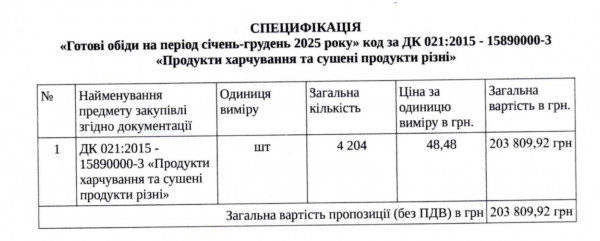 В 2025 году заказали 4 204 обеда по 48 гривен за один, общая сумма превысила 200 тысяч гривен.