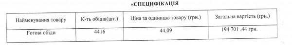 В 2024 году количество обедов составило 4 416 по 44 гривны за один, общая стоимость — более 194 тысяч гривен.