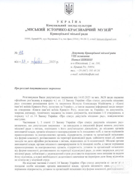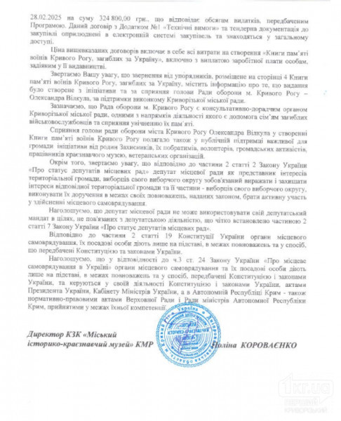 Недостоверность этой информации опровергается решениями городского совета о выделении средств из городского бюджета и официальным письмом директора городского историко-краеведческого музея как заказчика работ. Там указано, что содействие изданию Книги «того человека», то есть Александра Вилкула, заключалось в «популяризации проекта».