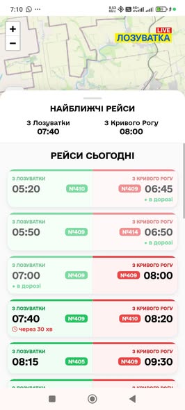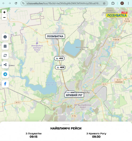 Сервис уже доступен онлайн и позволяет узнать, куда и когда движется нужный автобус между Лозоваткой и Кривым Рогом. Одно из главных преимуществ — визуализация маршрутов на карте, благодаря которой пассажиры могут наглядно увидеть направление движения транспорта.