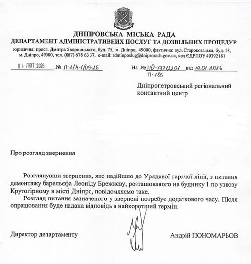 Об этом говорится в официальных ответах администрации Амур-Нижнеднепровского района и департамента административных услуг и разрешительных процедур Днепровского городского совета на обращения, поступившие через правительственную горячую линию, сообщает движение "Деколонизация.Украина".