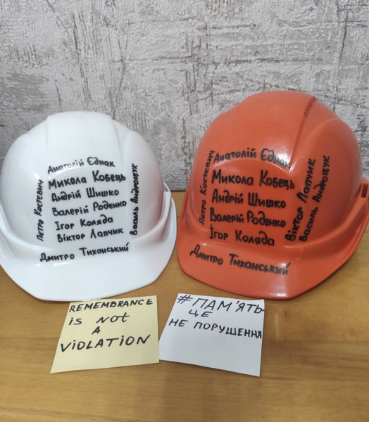 Работники предприятия нанесли на свои рабочие каски имена коллег, чья жизнь забрала агрессия РФ.