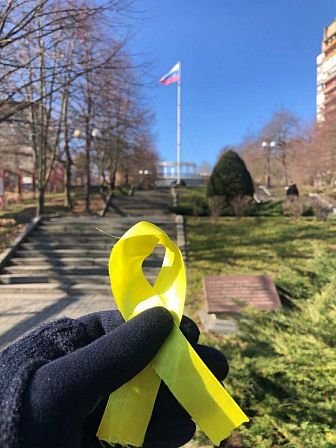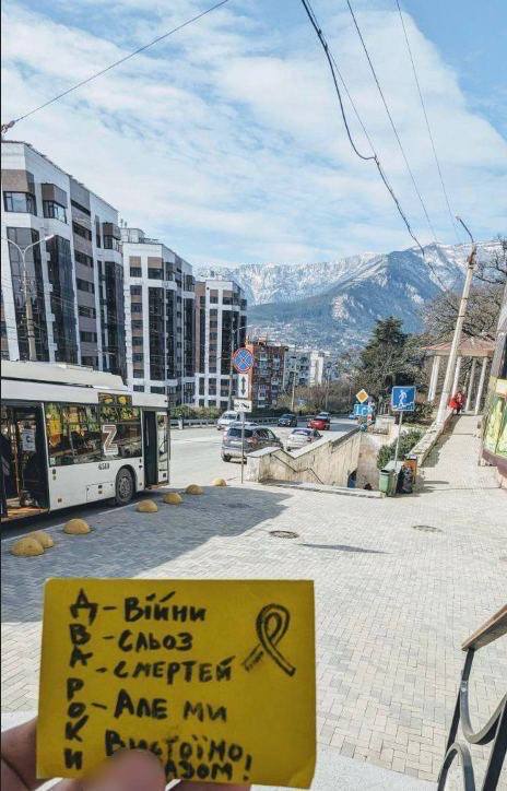Первые фото из Крыма появились в 2022 году — из Симферополя. Затем активность зафиксировали также в Севастополе, Ялте и других городах. Активисты развешивали желтые ленты, распространяли листовки, рисовали граффити.