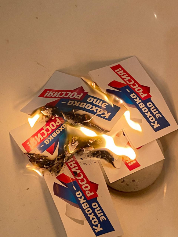 • сжечь агитационную продукцию (плакаты, газеты, буклеты и тому подобное),