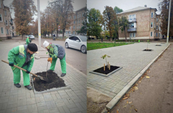 Впоследствии КП «Сансервис» сообщило на своей странице в Facebook о высадке деревьев возле дома.
