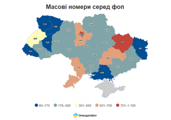 Больше всего массовых номеров использовали в Киеве — 1020, это почти треть от общего количества. Дальше идут: