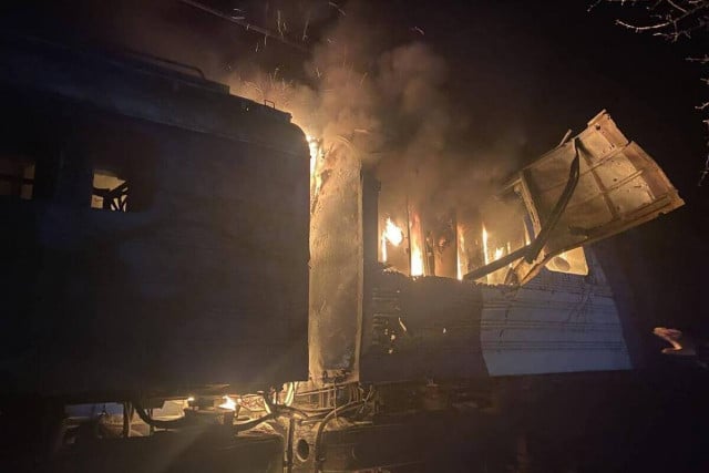В частности, в Харьковской области беспилотник попал в пригородный поезд. Машинист и его помощник получили осколочные ранения, медики оказали им помощь на месте.