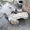 На въезде в Кривой Рог автомобиль Daewoo Sens столкнулся с ж/б блоком неиспользуемого блокпоста, после чего в машине взорвался газовый балон.
