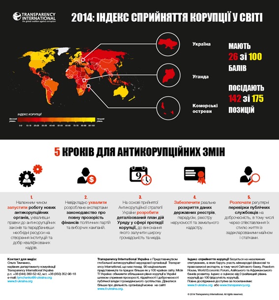 Так, неправительственная международная организация по борьбе и исследованию уровня коррупции по всему миру Transparency International обнародовала результаты нового Индекса восприятия коррупции-2014.