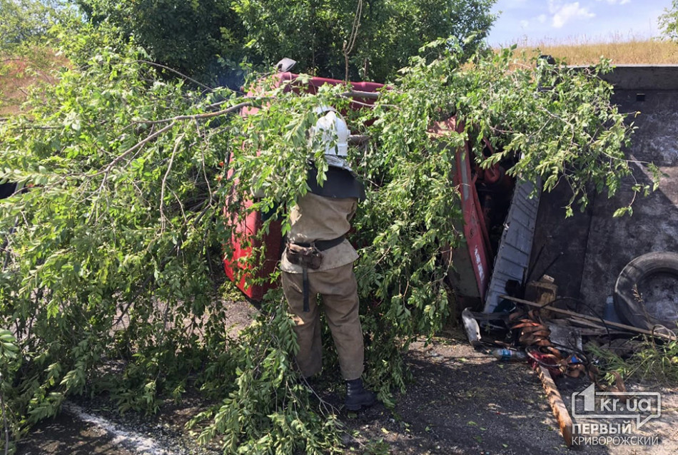 Фура слетела в кювет, врезалась в дерево и перевернулась – ДТП на трассе Днепр – Кривой Рог
