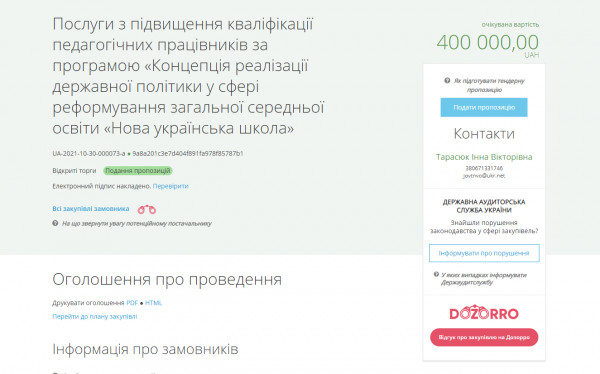 Такая информация рамещена на сайте государственных закупок Prozorro.
