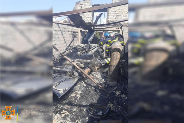 Вогонь знищив дах, перекриття, автомобіль та майно всередині, пошкоджено стіни гаражу.