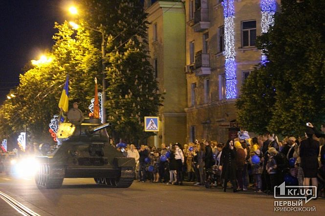В Інгулецькому районі Кривого Рогу учасники святкового параду, присвяченому Великій Перемозі над нацизмом у Другій світовій війні, вшанували полеглих героїв та запалили вранішнє небо святковим феєрверком.